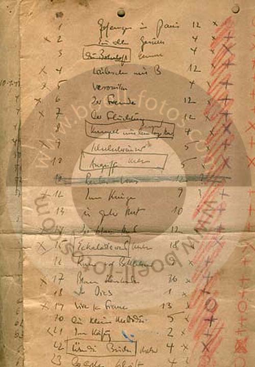 Erstes Verzeichnis der frühen literarischen Arbeiten auf einem Aktendeckel.